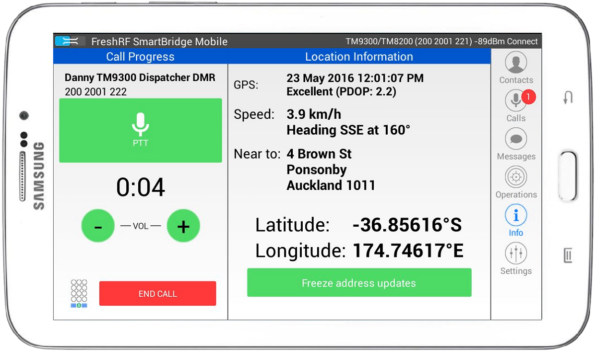 SmartBridge Mobile is the smartest, most fully featured radio head in the market. The radio is now an app; installed and updated automatically from the Google Playstore. The radio body goes under the seat and SmartBridge Mobile delivers a user friendly, operations focussed, fully integrated front end radio experience like no other. With your choice of tablet, a 7-10" touch screen interface, integration with voice, messaging, contacts, AVL/GPS, operations, and health and safety features. Separating the user interface and functionality from the RF body results in a huge simplification of installation, upgrades (software and hardware), configuration, and applying new features and enhancements. Visits to the vehicle for firmware updates are a thing of the past. Whether you have 10 or 1,000 radios in the field, the simplicity of management, training, user satisfaction and cost reductions will be profound.